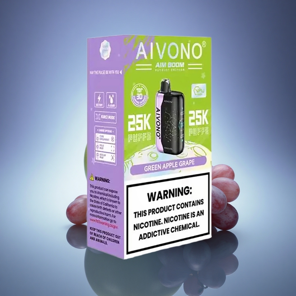 Каталог| Ексклузивна серия| AIVONO| Aivono Aim Boom 25000| Aivono Aim Boom 25000 Зелена Ябълка Грозде 650mAh 0% никотин
